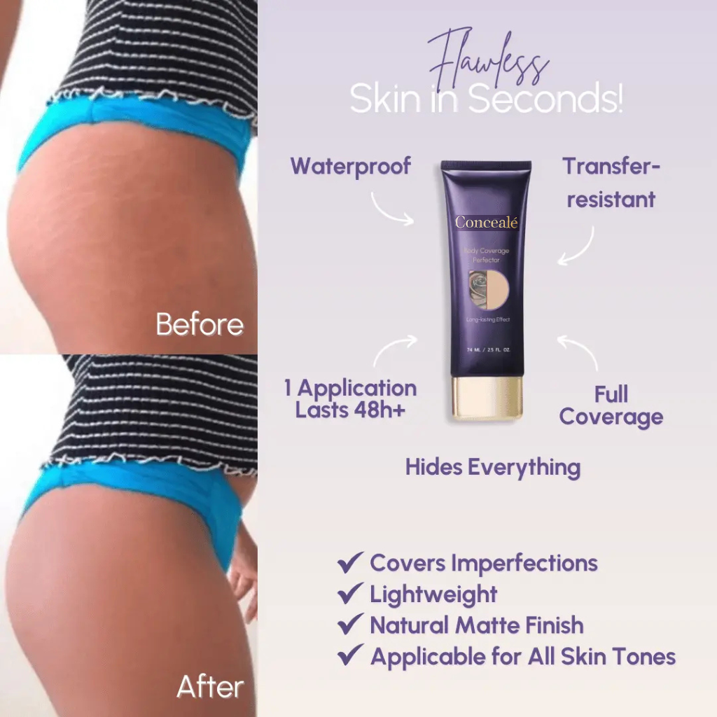 See the transformation for yourself — from scars and stretch marks to tattoos and uneven skin tone, Concealé visibly blurs it all.