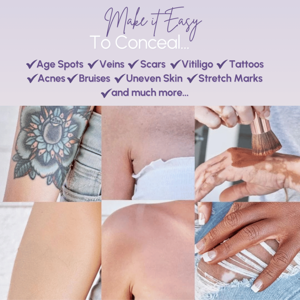 Yes — Concealé is designed to blur visible imperfections like veins, scars, and stretch marks. Its high-pigment formula offers natural-looking coverage that’s buildable without looking thick or unnatural.