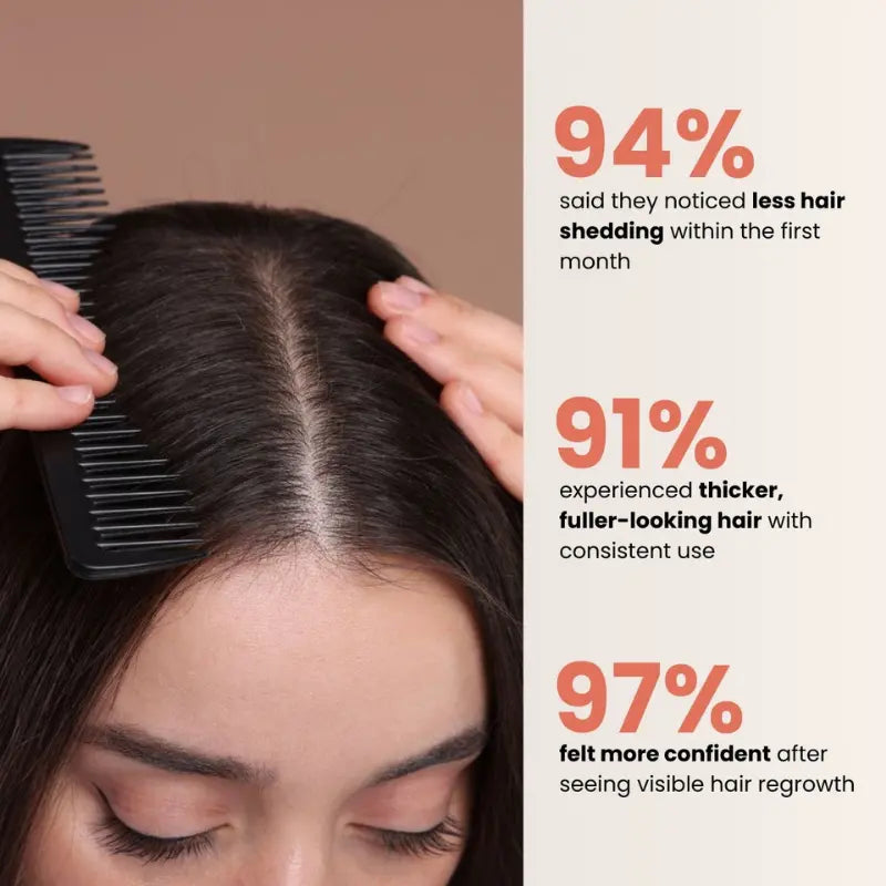 Most customers notice less hair shedding within 2–4 weeks, with visible regrowth and thicker strands typically reported by week 6–8 when taken consistently.